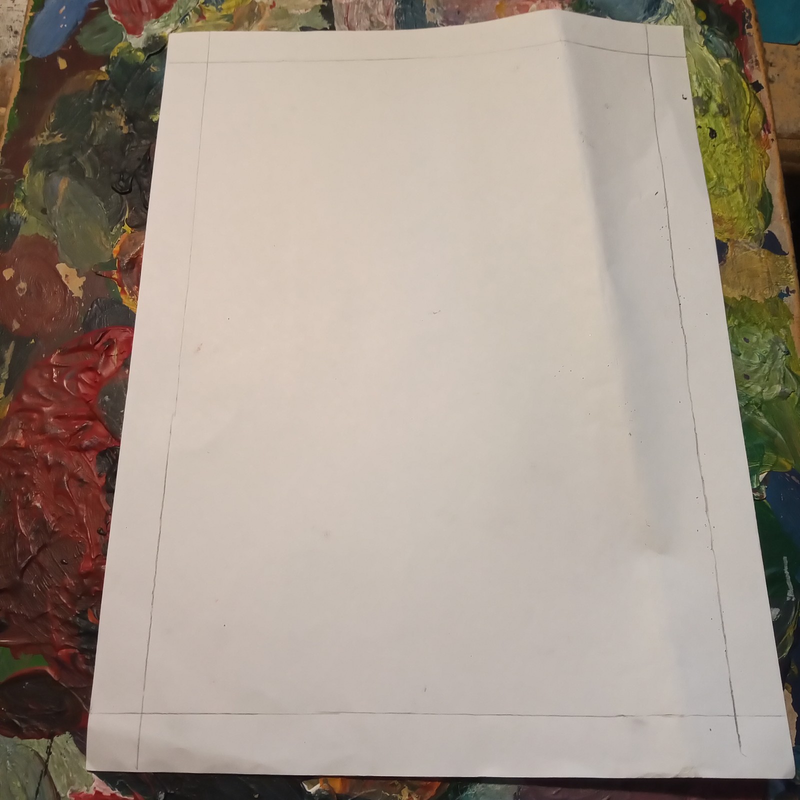 Ahora que ya tenemos el marco preparado en el lado A, deberemos realizar una obra de arte dentro del límite del marco de la hoja, es decir, dentro de ese rectángulo que se nos formó. Todo lo que no este dentro de ese marco, quedará en blanco.